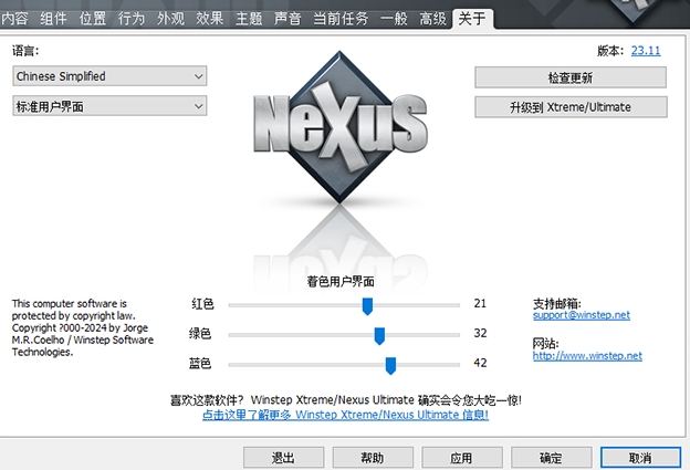 模糊的背后特性在Vista与Windows 7系统中自动为半透明的Nexus背景添加模糊效果,增强视觉层次感。