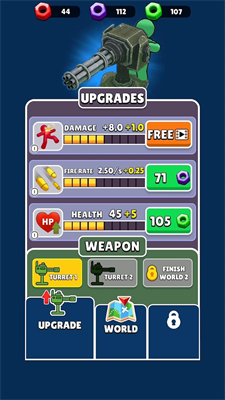 1. 塔防进化体系:通过合并同类武器箱提升炮台等级,见证子弹从普通弹幕到追踪导弹的蜕变