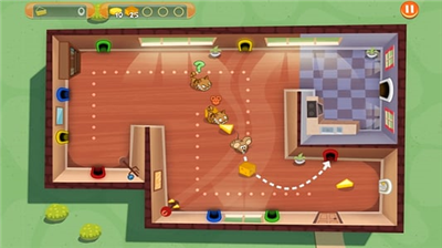 夜视镜、弹簧鞋等特殊装备可逐步解锁,利用奶酪轮盘等场景道具制造声东击西的效果,让巡逻猫咪陷入混乱状态。