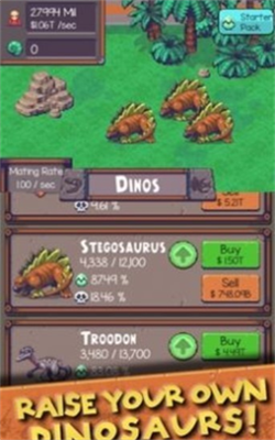4、培育恐龙种群:饲养各类恐龙,在贸易站交易获取宝石资源,用于加速游戏进度。关注恐龙出生与死亡率,升级个体以提高生存能力。