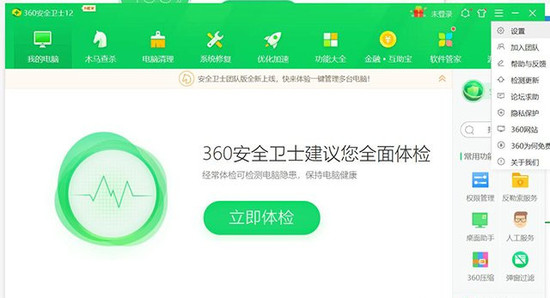此外,如果您安装了360安全卫士软件,它也可能关联到热点弹窗。为解决此问题,打开360安全卫士,同样在右上角点击菜单图标(“三”形标识),然后选择“设置”进入配置中心。这一步能帮助彻底消除潜在干扰源,确保关闭效果持久稳定。