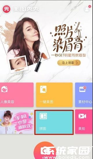 2、进入美图秀秀主界面后,浏览功能菜单找到"拼图"选项并点击。拼图功能专为合并照片设计,它支持多种布局方式,满足不同用户的创意需求。点击后应用会引导您进入下一步选择图片的界面。