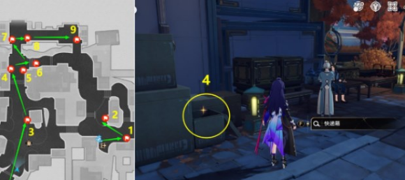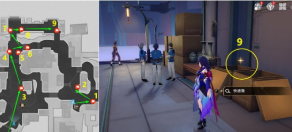 (2) 需特别注意第九个快递箱的特殊解锁机制:必须推进主线任务【金人旧巷市廛喧】至【金戺重喧·其三】阶段后期,该点位才会在地图中显现。建议优先完成相关剧情章节,避免因进度不足导致收集中断。