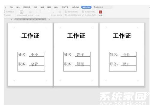 完成合并后,新文档将展示所有工作证成品。用户可批量打印或分发电子版。最终效果整齐划一,完全符合企业规范。示例输出如下: