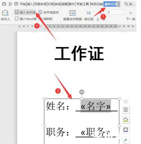 在模板中插入合并域是关键操作。定位到工作证模板的姓名区域,点击“插入合并域”,从下拉列表中选择对应字段如“姓名”;同样方式在职务位置插入“职务”域。Word会自动标记这些位置,确保数据填充精准。操作时需仔细核对字段名与Excel列标题是否一致,避免错位。详细操作示例如下: