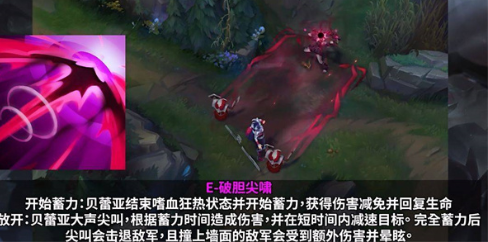被动-深红诅咒:这是贝蕾亚的续航核心。当生命值低于50%时,治疗效果会获得巨额提升,残血反杀就依赖此特性。所有攻击附加可叠加的流血效果,每层造成持续物理伤害并转化15%为生命回复。需注意她没有自然回血能力,技能释放必须消耗生命值,建议搭配征服者符文提升吸血效率。