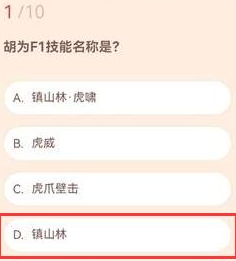 答案:D、镇山林。这是胡为的核心防御技能,释放时能形成一道护盾屏障,有效抵挡敌人攻击。技能名称源自其山林守护者的背景设定,在战斗中合理运用能大幅提升生存能力。