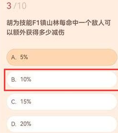 答案:B、10%。每命中一名敌人,镇山林技能提供额外10%的减伤效果,最高可叠加。这一机制鼓励玩家精准命中多个目标,在团战中发挥关键作用,显著降低所受伤害。