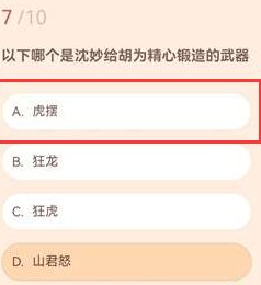 答案:A、虎摆。虎摆是沈妙专属锻造的武器,专为胡为设计,拥有高暴击率和特殊特效。在游戏中装备后能提升攻击速度,是胡为build中的优选装备。